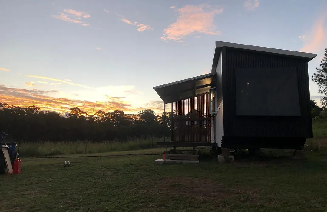 Les équipements de cuisine comprennent une bouilloire électrique, un réfrigérateur et de la vaisselle, le tout dans un coin repas.